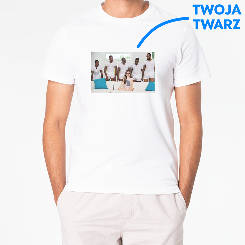 Koszulka „One Girl Five Guys” w wersji personalizowanej to żart na najwyższym poziomie. Klasyczny internetowy motyw zyskuje nowy wymiar – w miejscu twarzy dziewczyny pojawia się zdjęcie przesłane przez Ciebie. To sprawia, że każda koszulka staje się jedyna w swoim rodzaju i gwarantuje efekt wow u znajomych.
